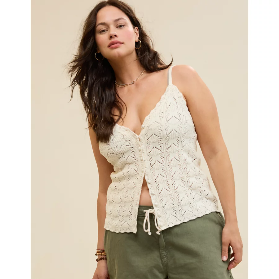 Pointelle-like open knit patternFunctional button-front closureAdjustable strapsAccessibility deets: functional button-front for easier on/off!! 100% CottonMachine washImported Classic lengthFitted