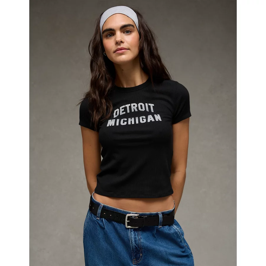 AE Detroit Michigan Graphic Hey Baby Tee – Black