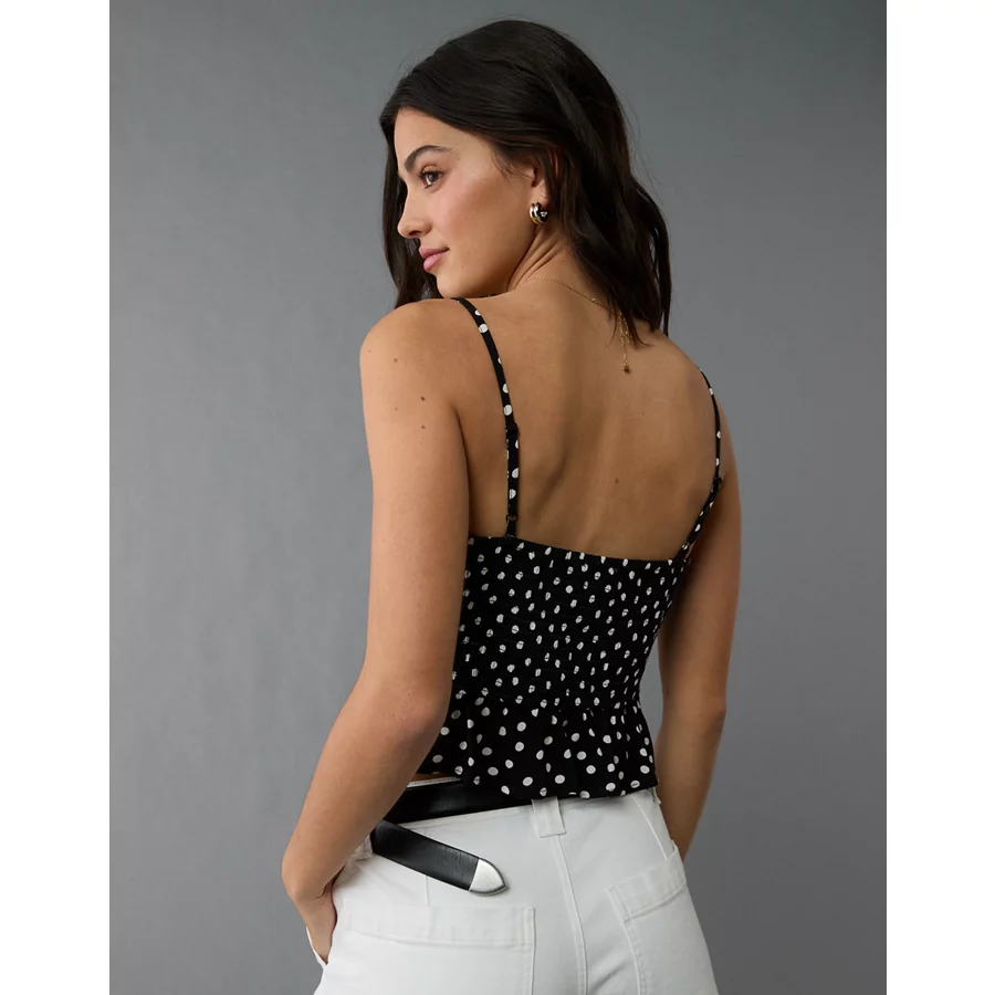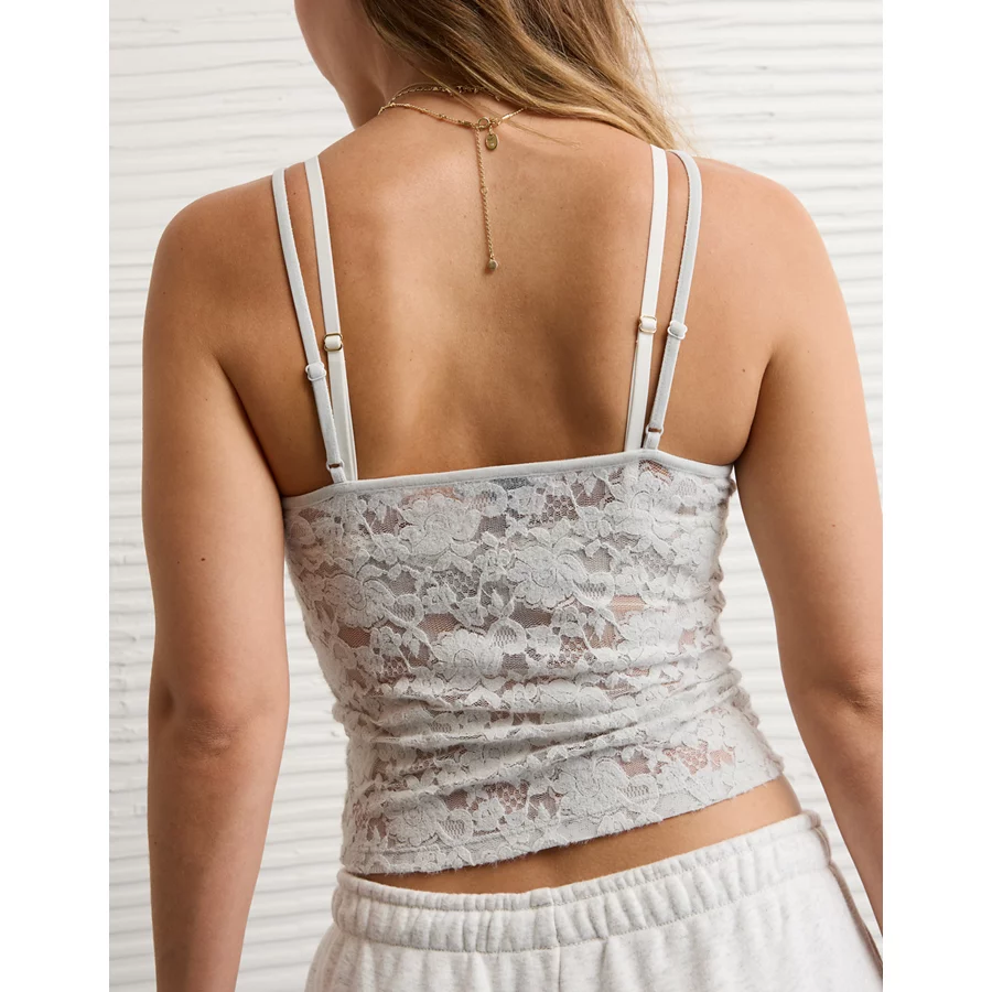 Soft lace fabricationSpaghetti strapsVelvet trim detailV-neckThis tank is Real Good: Made with the planet in mind & a promise to