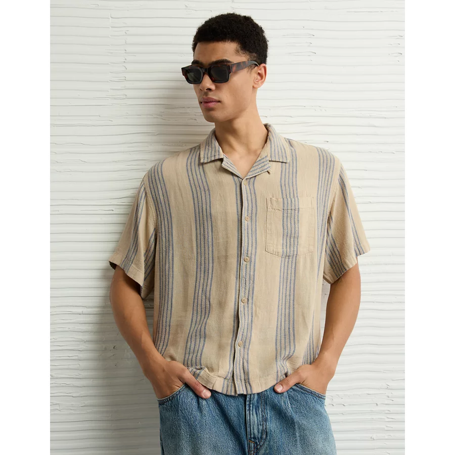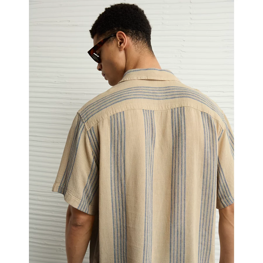 AE Poolside Linen-Blend Striped Button-Up Shirt – Light Khaki