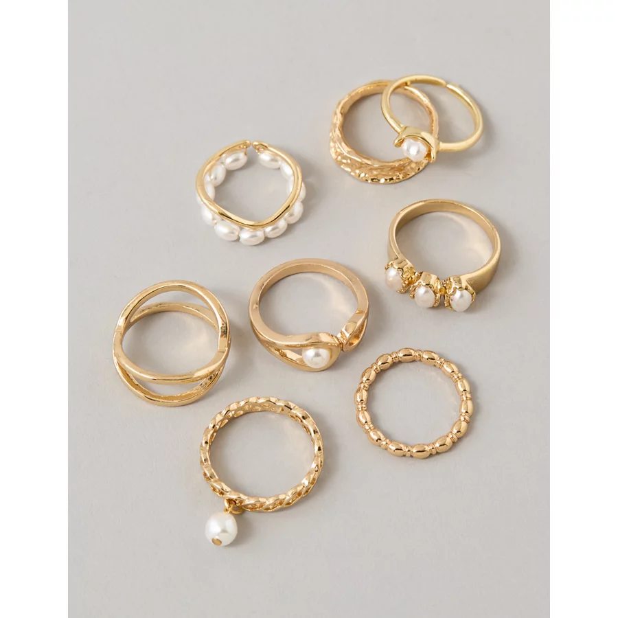 AE Pearl & Gold Rings 8-Pack – Gold