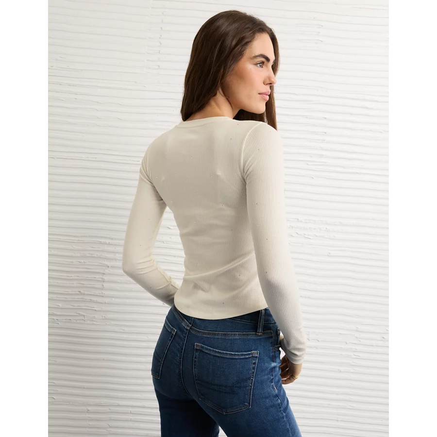 AE Long Sleeve Rhinestone T-Shirt – Chalk
