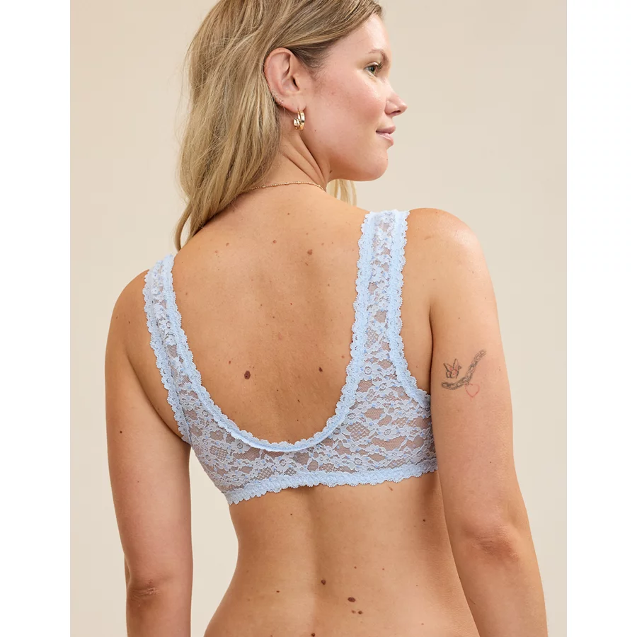 Show Off Flocked Vintage Lace Plunge Bralette – Eyelet Blue