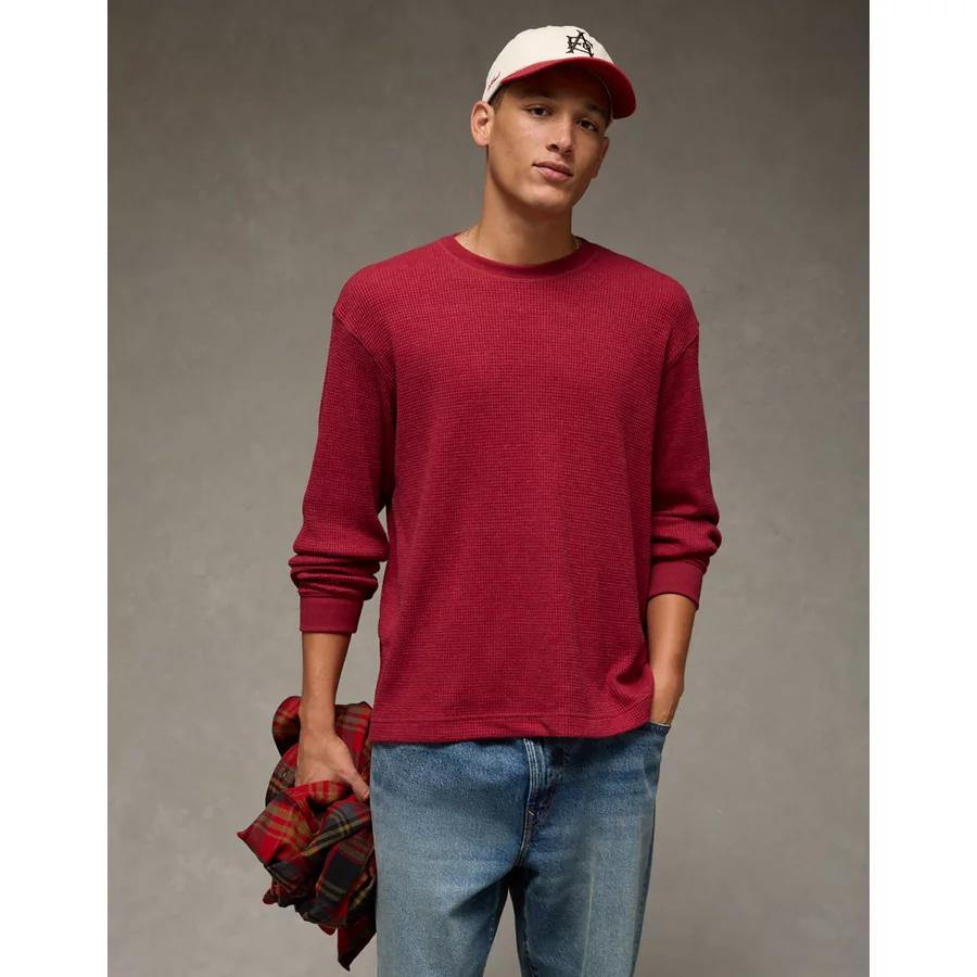 AE Cozy Waffle Thermal T-Shirt – Brick Red