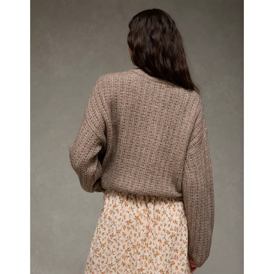 AE Oversized Waffle Sweater – Dark Brown