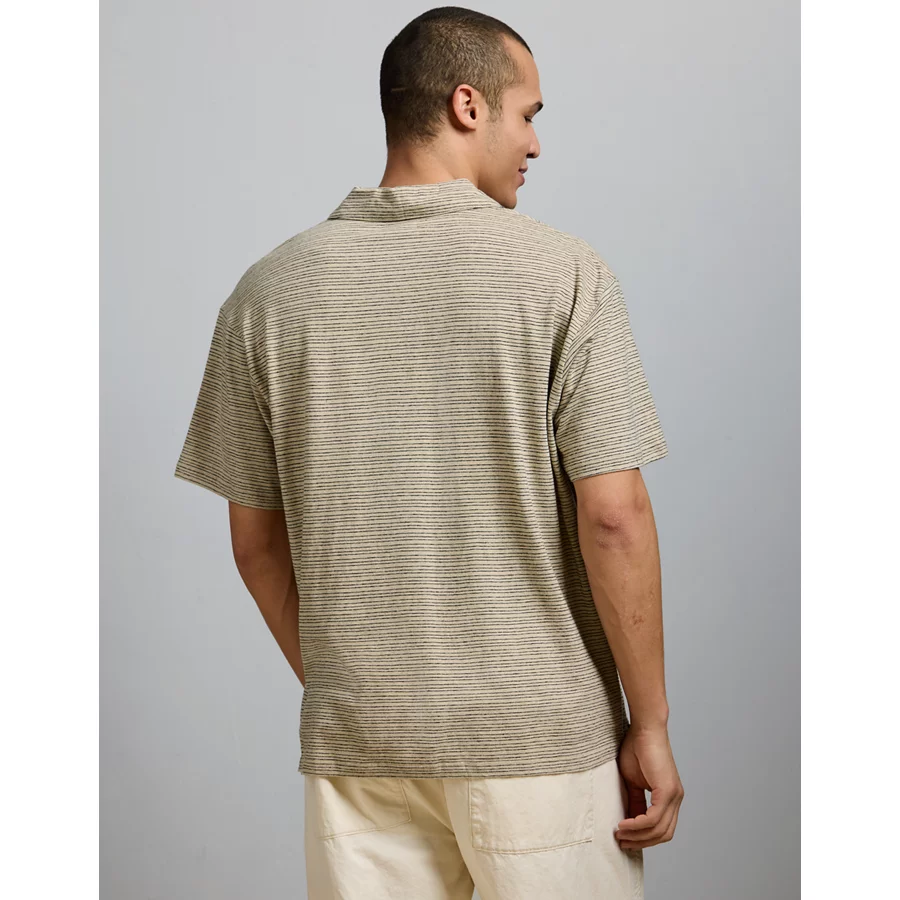 AE77 Premium Linen-Blend Polo Shirt – Khaki