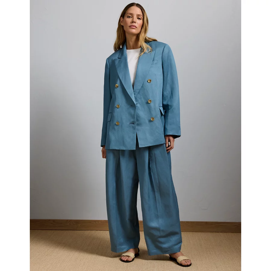 AE77 Premium Linen-Silk Blend Double-Breasted Blazer – Blue