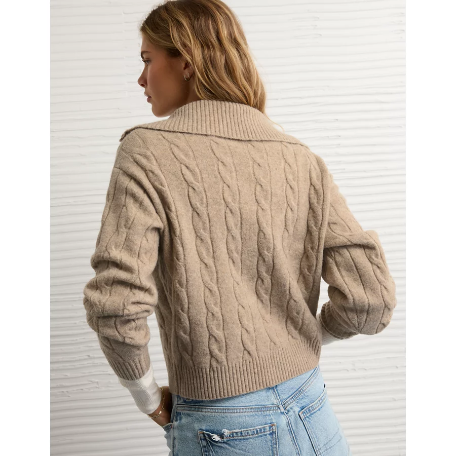 AE Cable-Knit Quarter-Zip Sweater – Toasted Almond