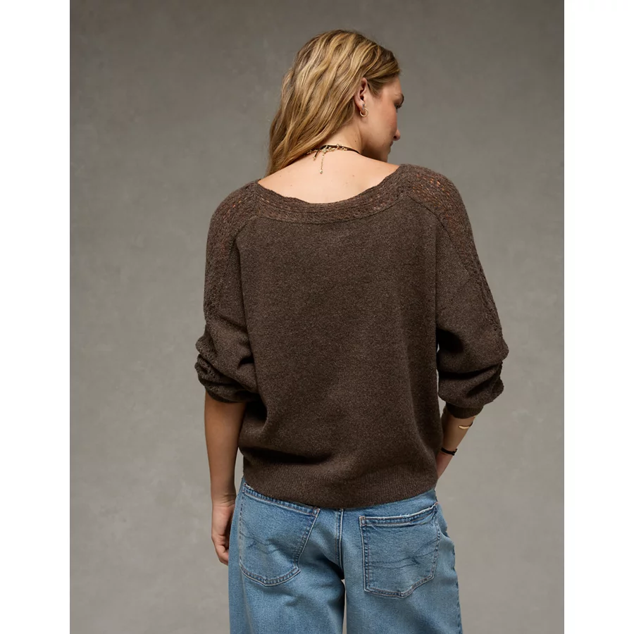 Super soft, lightweight lace knitWide boat neck 97% Recycled Polyester, 3% ElastaneMachine washImported Classic fit & lengthLong sleeves