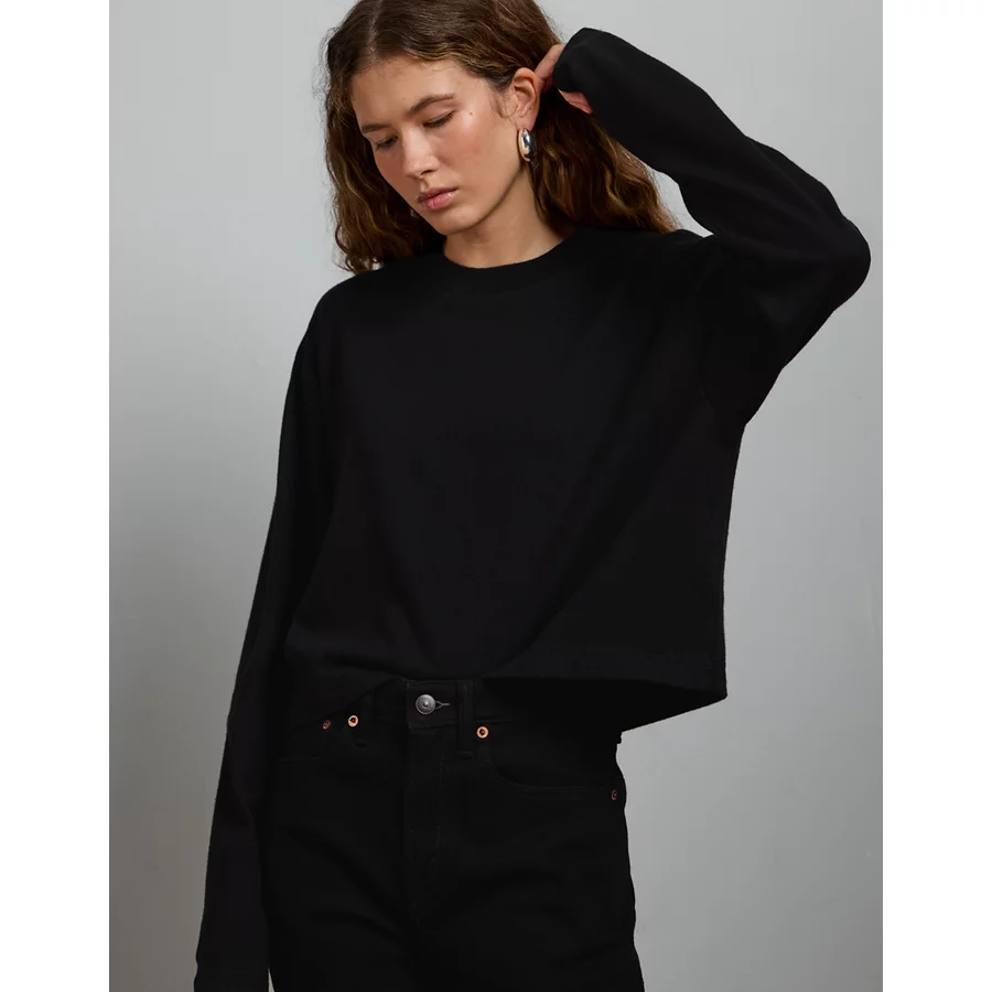 AE77 Premium Boxy Long-Sleeve Cropped T-Shirt – Black