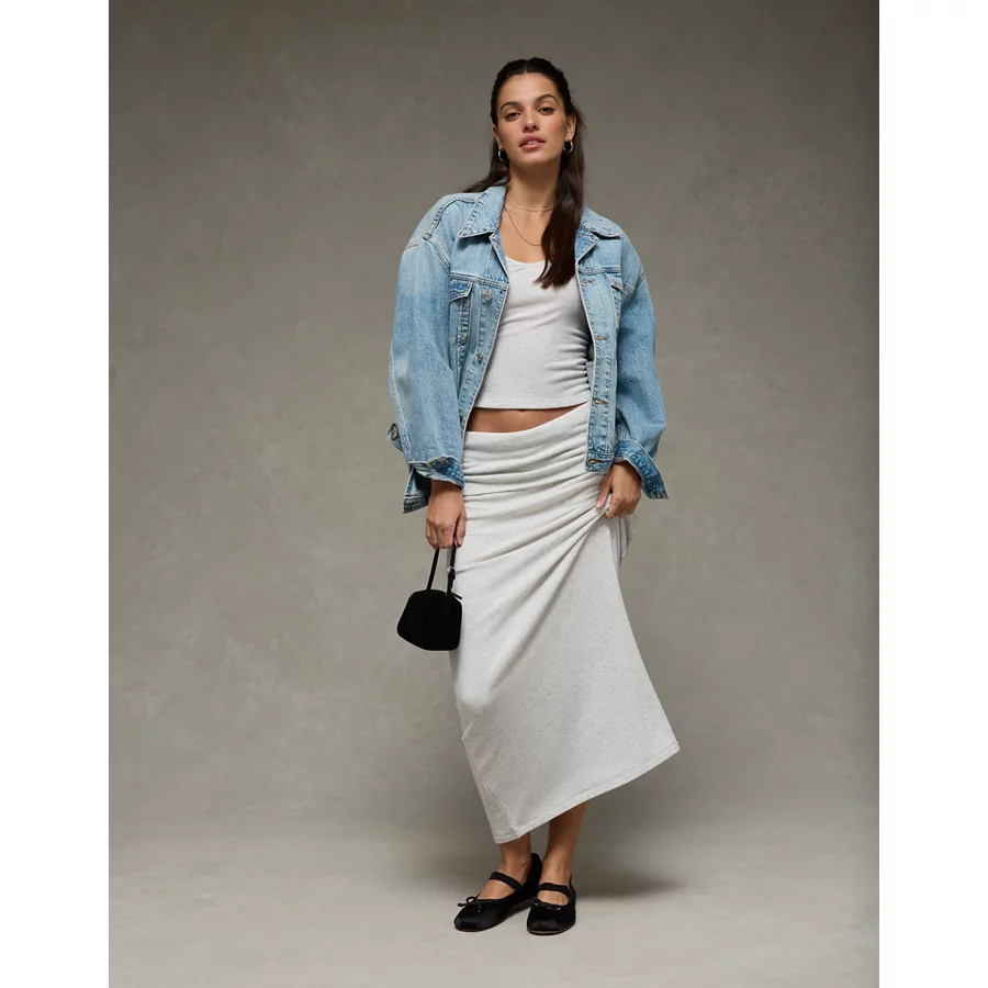 AE Cozy High-Waisted Foldover Maxi Skirt – Light Heather Gray