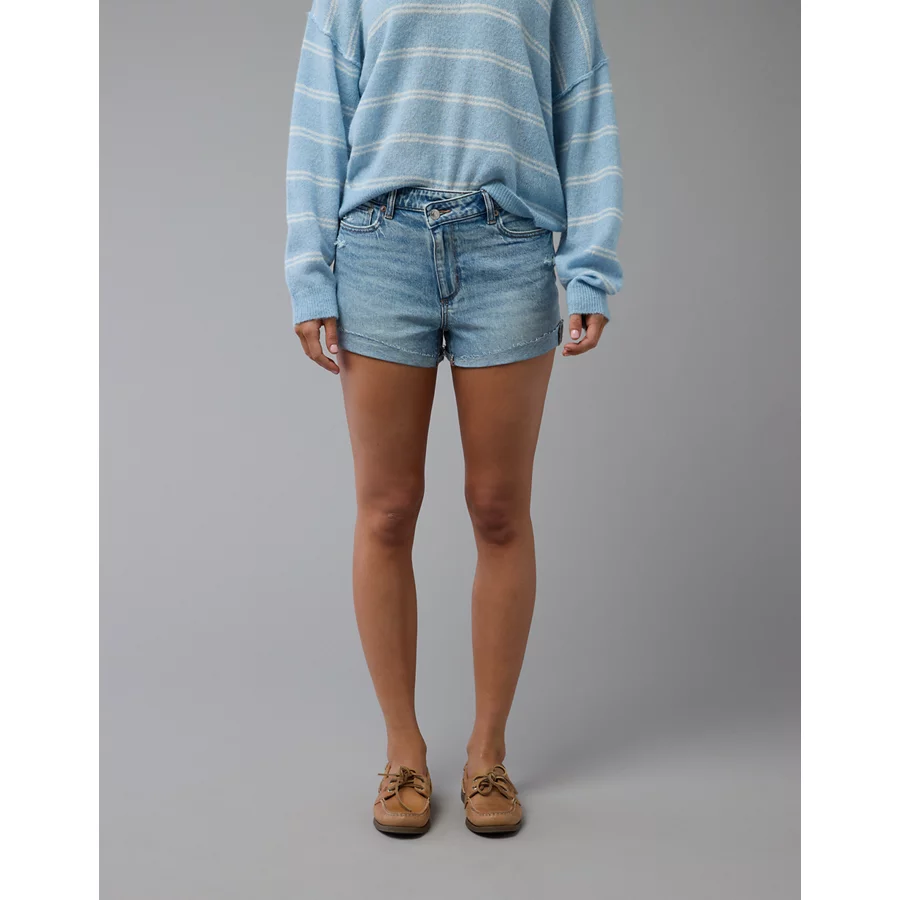 AE Stretch Ripped Denim Mom Short – Medium Bright Indigo