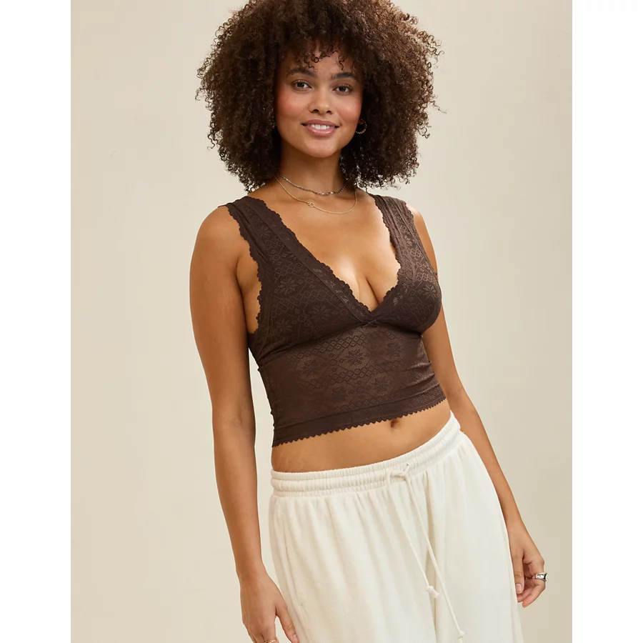 Fabric: Soft & stretchy lace with fair isle snowflake details.Features: Easy pull-on silhouette. Cups lined with microfiber for coverage.Design: Deep