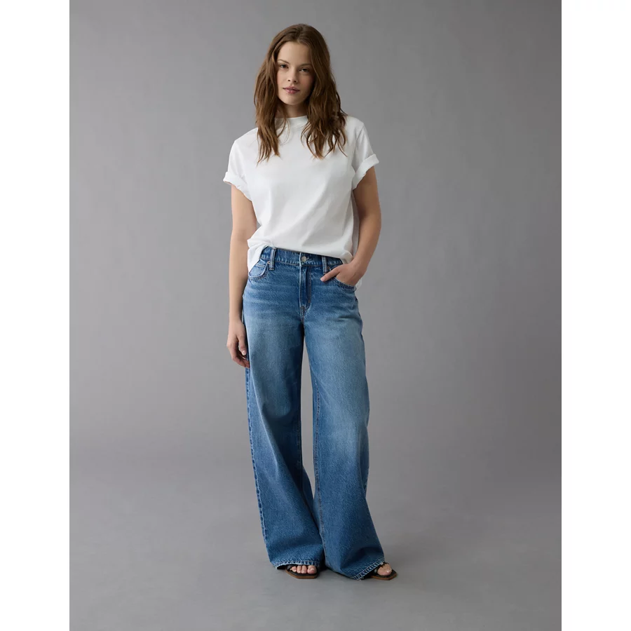 AE Dreamy Drape Strigid Low-Rise Ultra Wide-Leg Jean – Medium Tinted Indigo