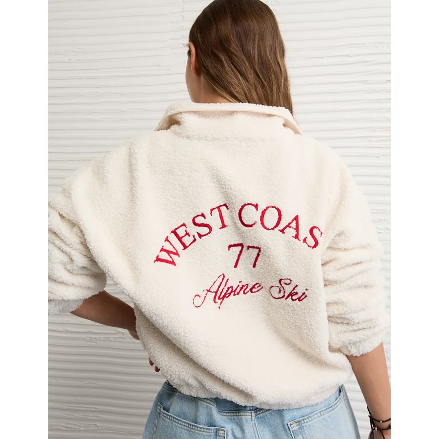 AE Sherpa Fleece Graphic Henley Sweatshirt – Cream