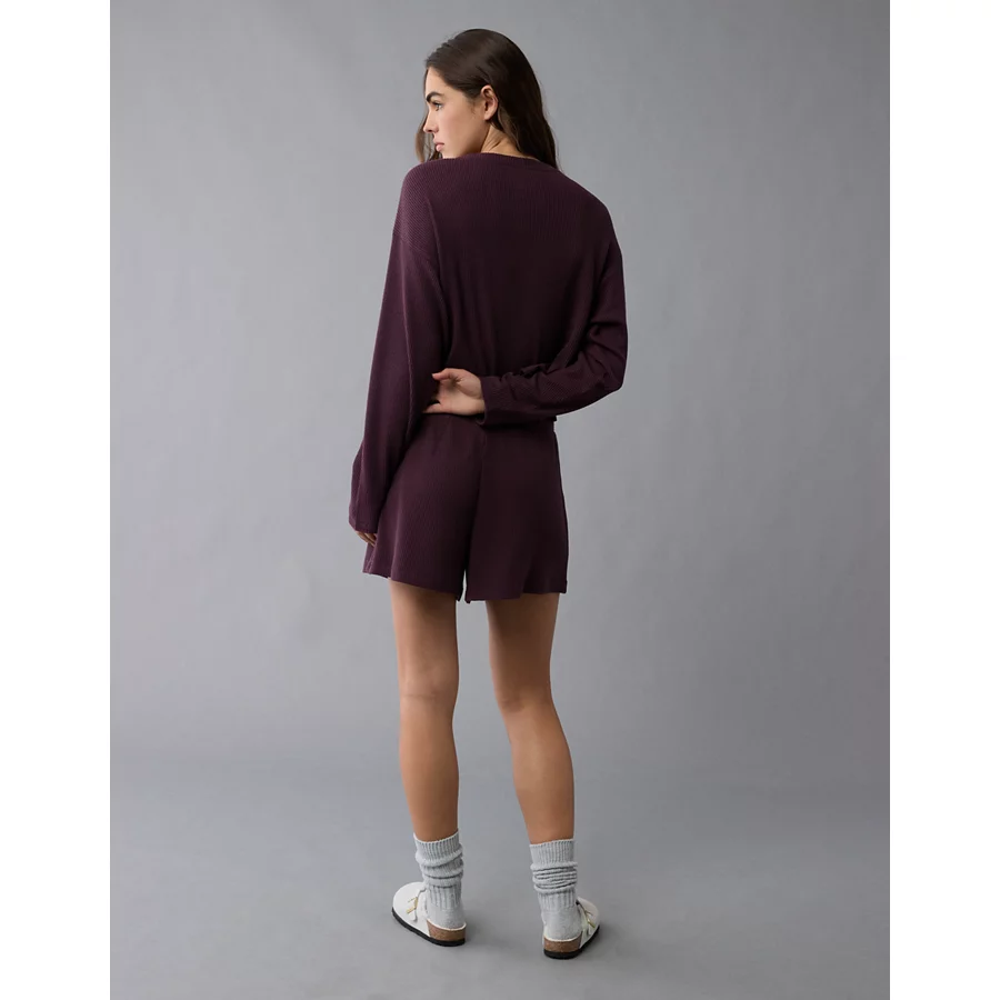 Super soft plush waffle fabricLong sleeve top + shorts 95% Recycled Polyester, 5% ElastaneMachine washImported Relaxed fit