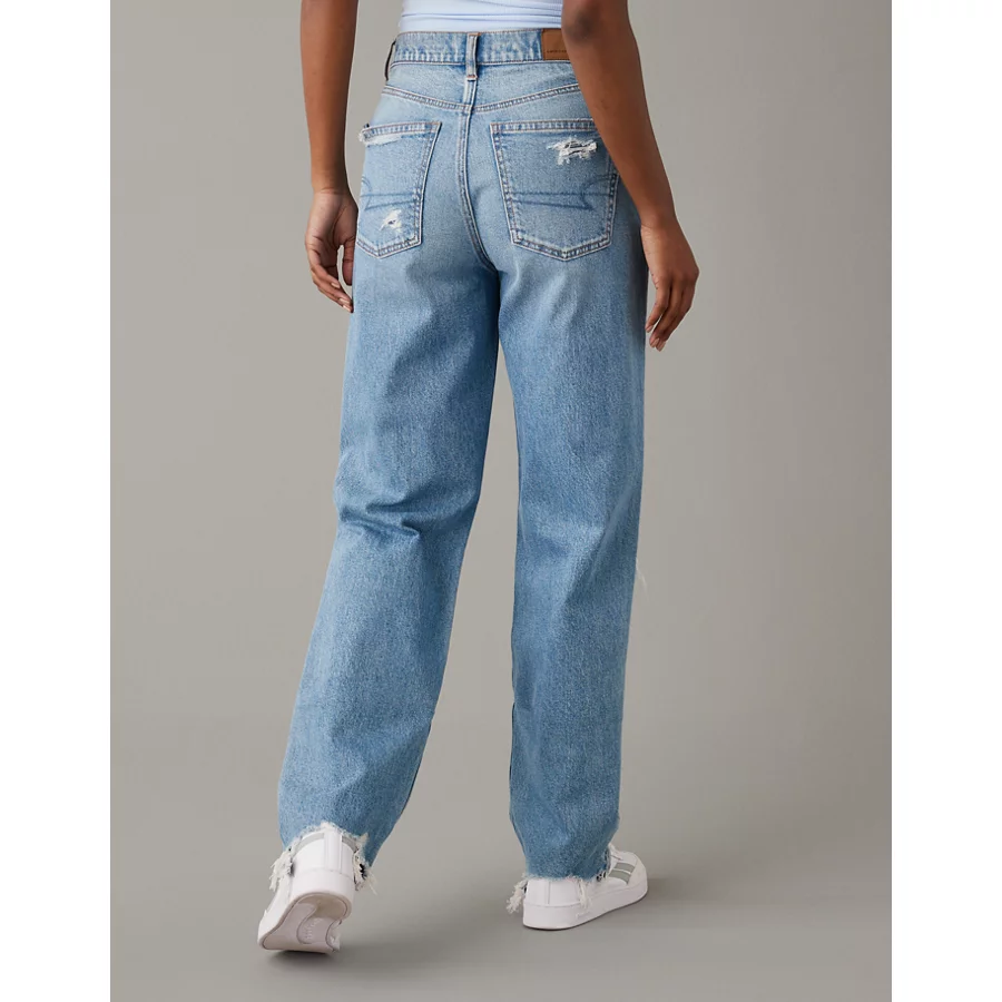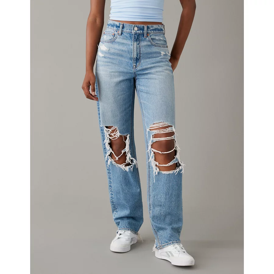 AE Strigid Ripped Highest Waist Baggy Straight Jean – Medium Indigo Wash