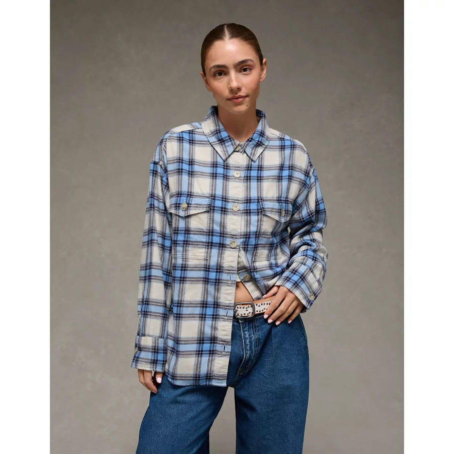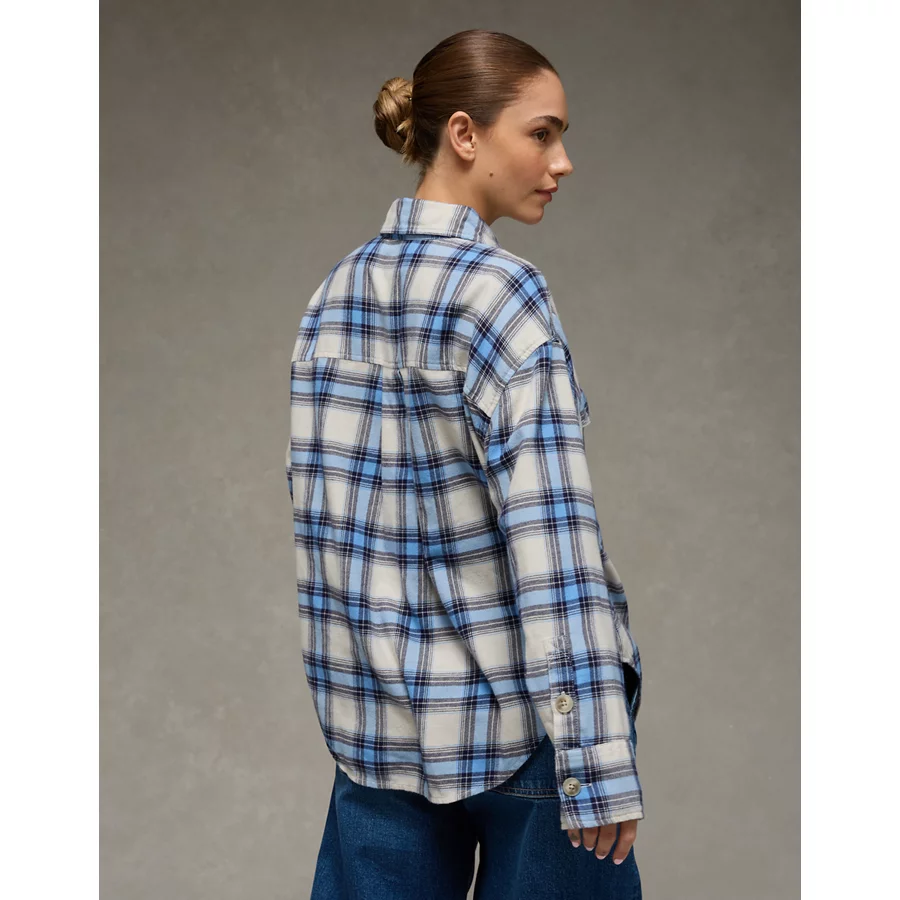 AE Plaid Button-Up Shirt – Blue
