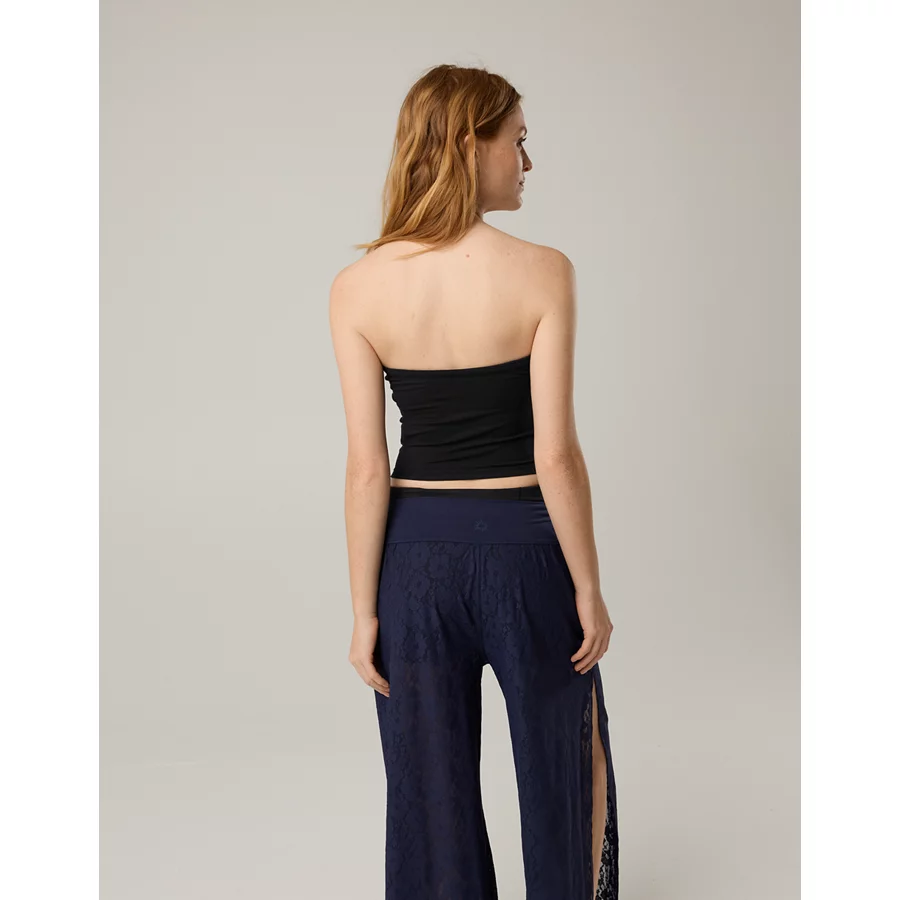 THE LOOK: Strapless with tie at front. Silky smooth. Subtle rib knit.THE FEEL: Heavyweight. Built-in shelf bra.THE MOVES: On the