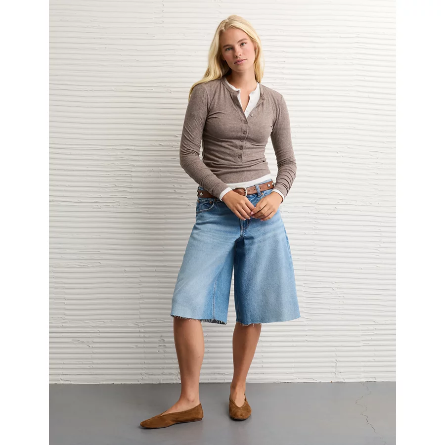 AE Long Sleeve Henley T-Shirt – Dark Brown