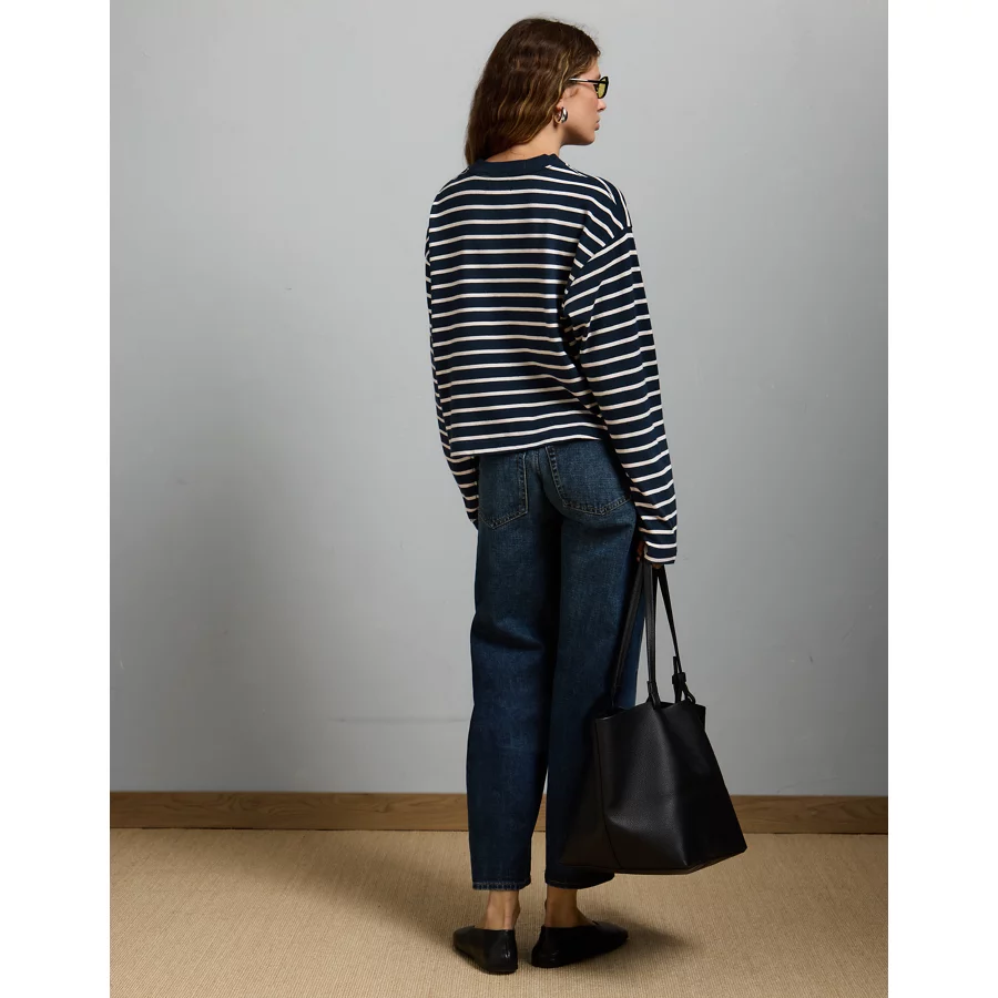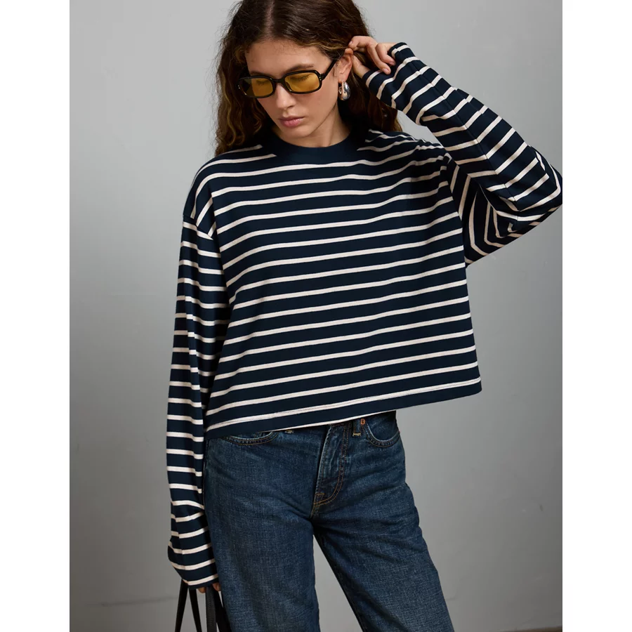 AE77 Premium Boxy Long-Sleeve Cropped T-Shirt – Navy
