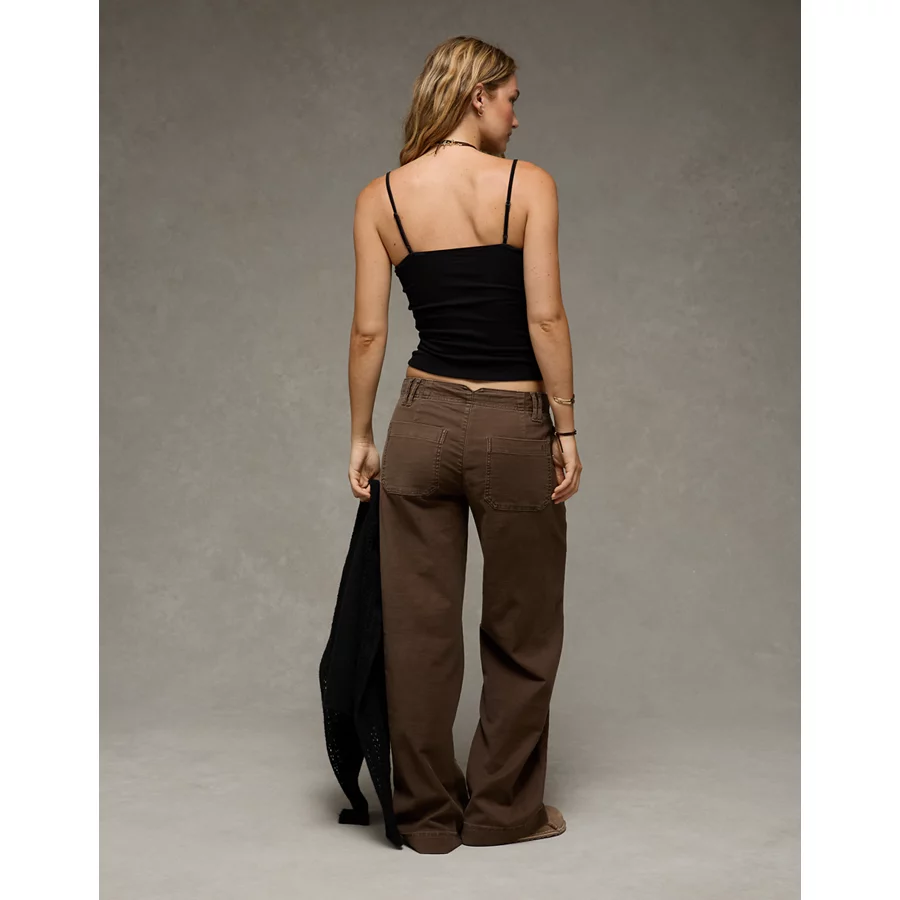AE Stretch Leopard Low-Rise Baggy Wide-Leg Pant – Brown
