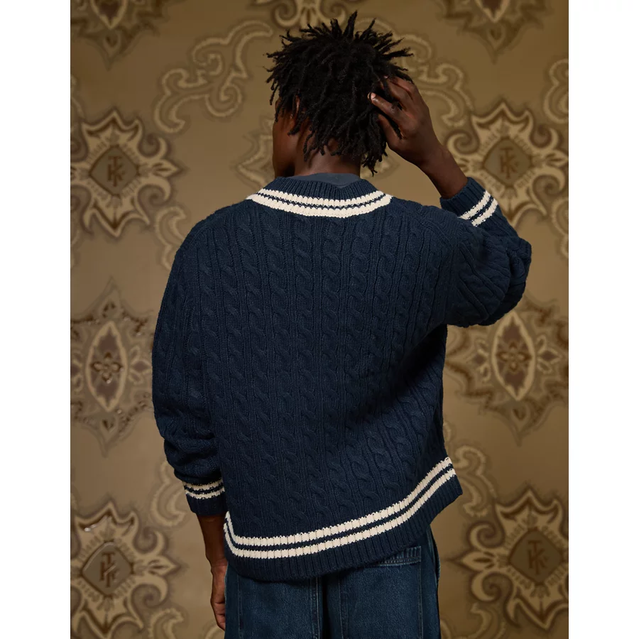 AE x Tru Kolors Cable Knit Cricket Sweater – Navy
