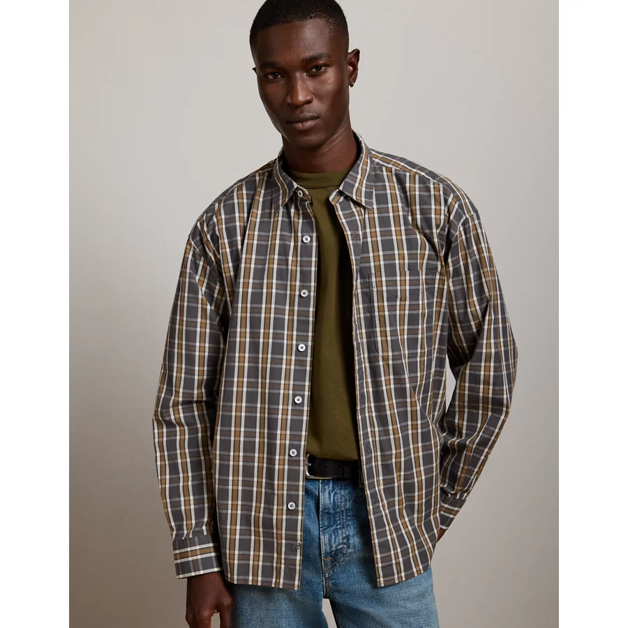 AE Relaxed Fit Everyday Flannel Shirt – Charcoal