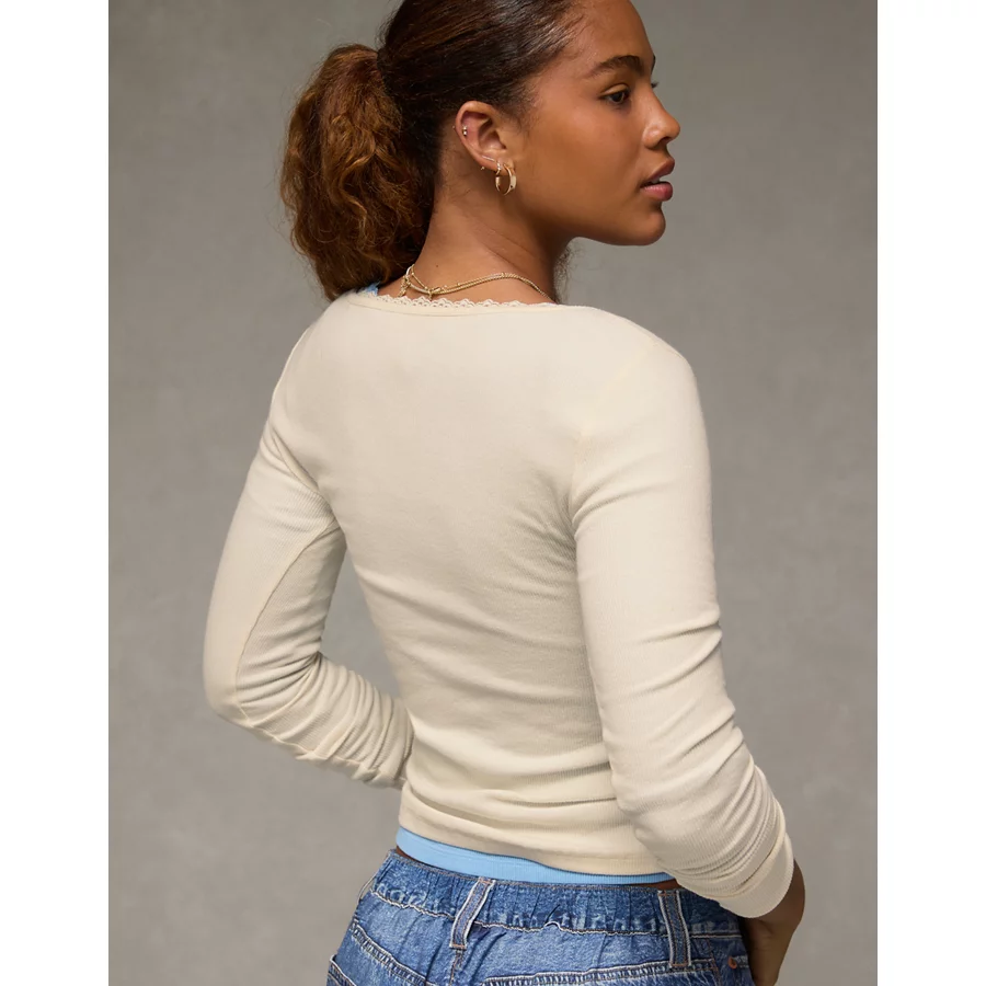 AE Lace-Trim Long Sleeve T-Shirt – Cream
