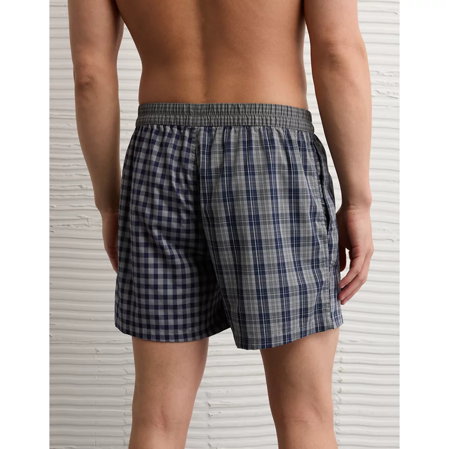 AEO Men’s Plaid Stretch Poplin Boxer Short – Grey