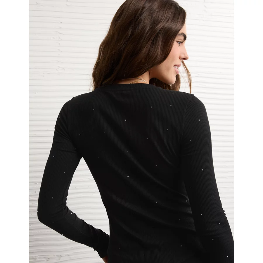 AE Long Sleeve Rhinestone T-Shirt – True Black