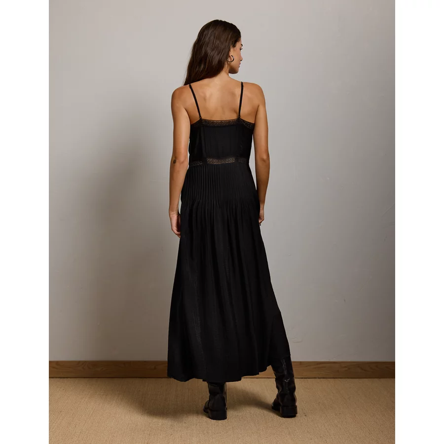 AE77 Lace Ruffle Maxi Dress – Black