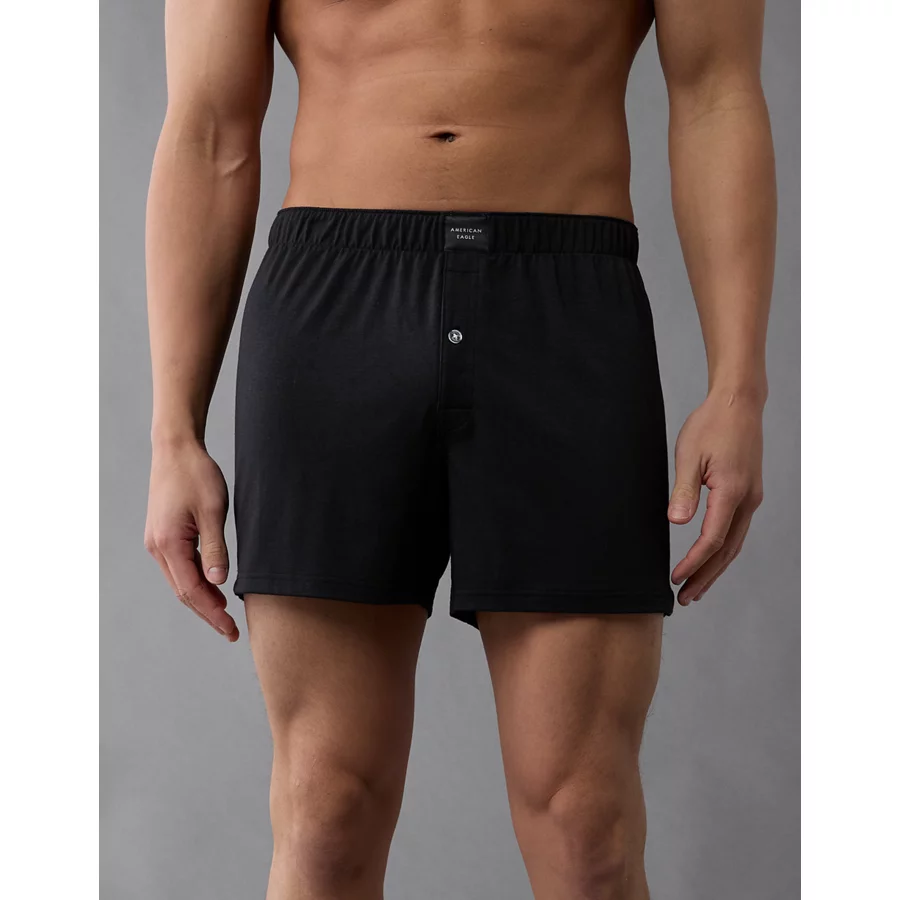 AEO Men’s Slim Knit Ultra Soft Boxer Short – Black