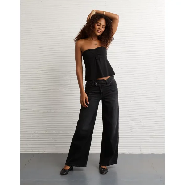 AE Tie Front Flyaway Babydoll Tank Top – True Black