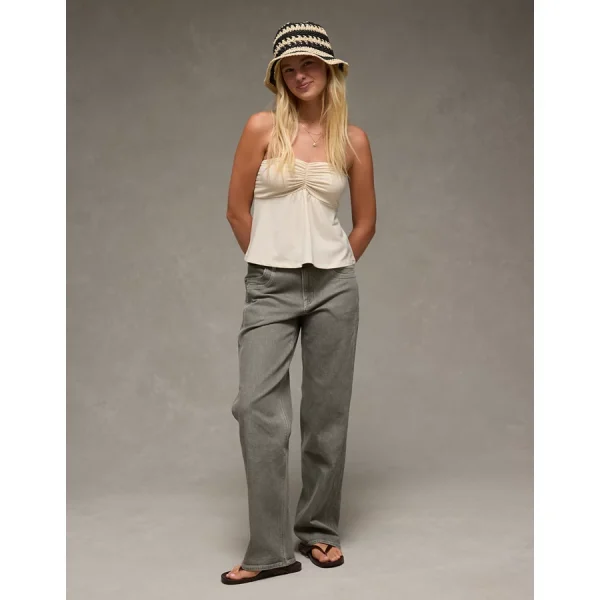 AE Tie Front Flyaway Babydoll Tank Top – Light Heather Gray