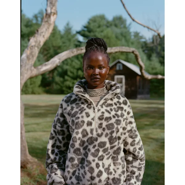 THE LOOK: Like a teddy bear you can wear. Quarter zip neckline.THE FEEL: Sooo soft and cozy.THE MOVES: On the