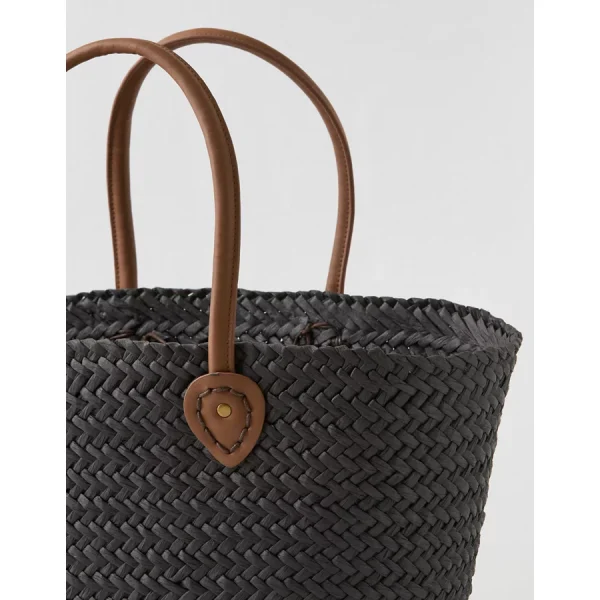 Aerie Oversized Woven Straw Bag – Black
