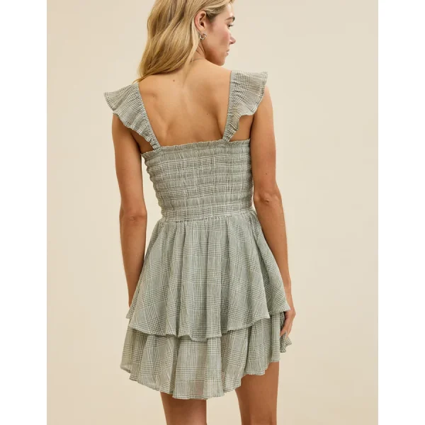 Gauzey plaid fabricSquare necklineSmocked bodice with a V-waistFlutter sleeve deetsHandkerchief skirtAccessibility deets: over-the-head access for easier on/off!! 100% CottonMachine washImported