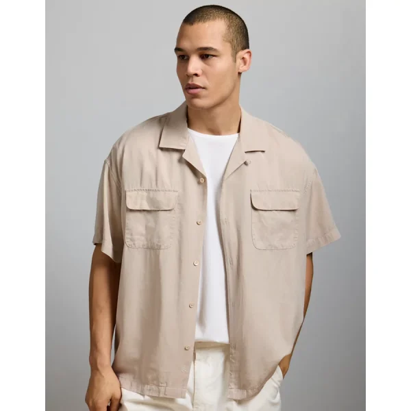 AE77 Premium Relaxed Short-Sleeve Button-Up Shirt – Khaki