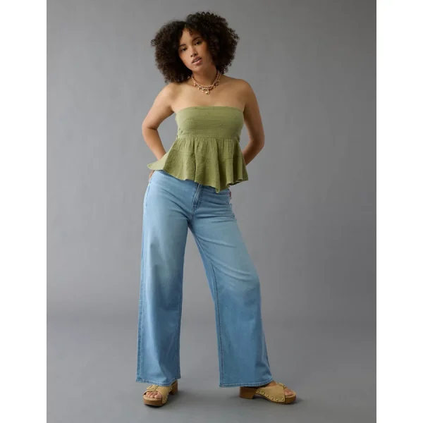 AE Dreamy Drape Stretch Curvy Super High-Waisted Baggy Wide-Leg Jean – Light Bright Indigo