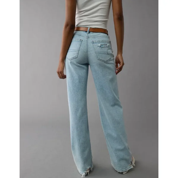 AE Dreamy Drape Stretch Curvy Ripped Super High-Waisted Baggy Wide-Leg Jean – Light Destroy Wash