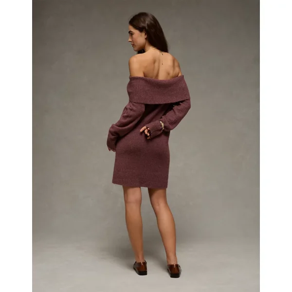 AE Off-the-Shoulder Sweater Mini Dress – Brown