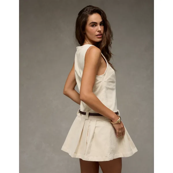 AE Pleated Corduroy Mini Dress – Cream
