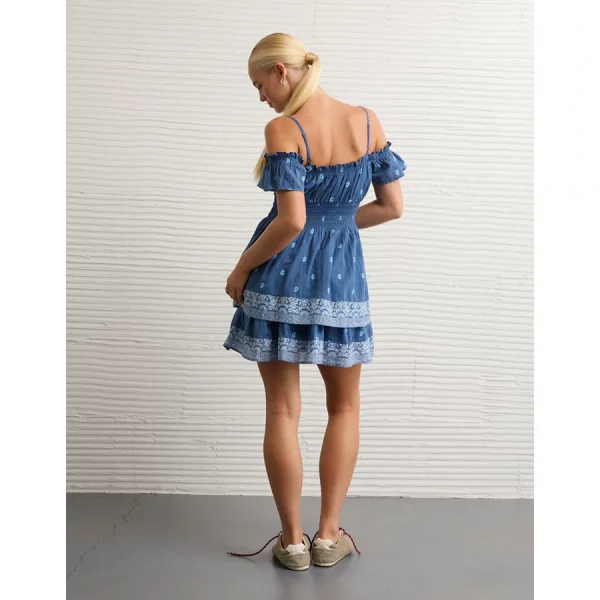 AE Off-The-Shoulder Smocked Mini Dress – Blue Vibe