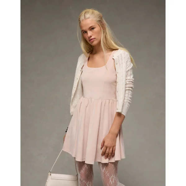 Soft velvet fabricCorset bodiceSquare neckSleeveless 95% Recycled Polyester, 5% ElastaneMachine washImported Fitted top and flared bottomMini length