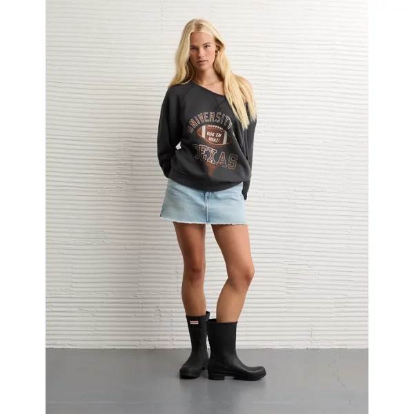 AE Texas Longhorns Graphic Off The Shoulder Sweatshirt – Washed Black
