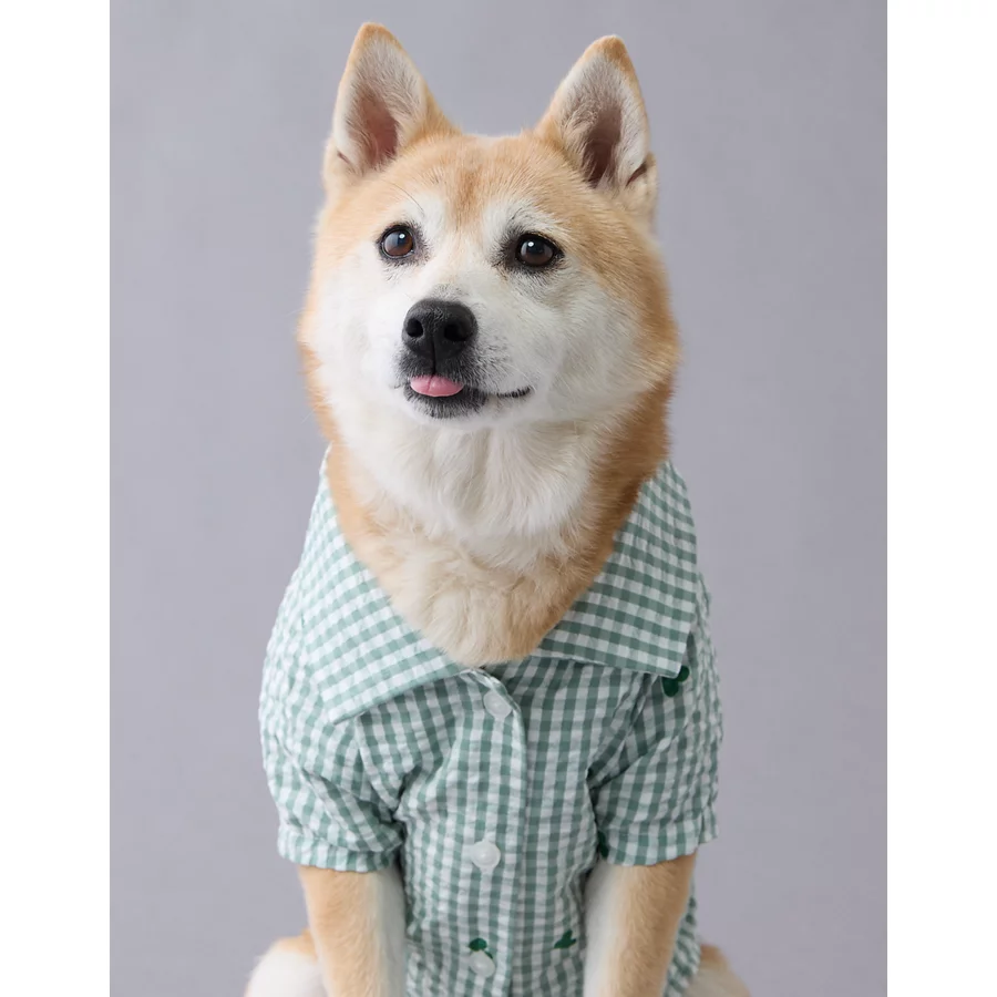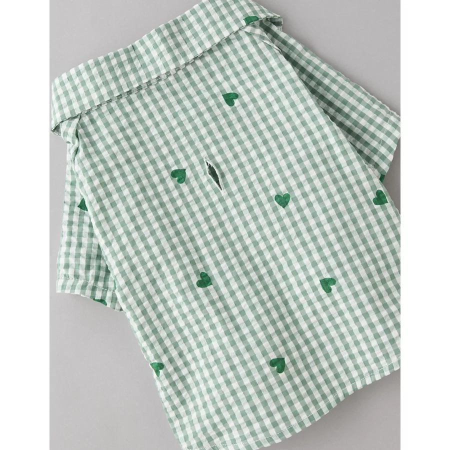 ABO Gingham Hearts Button-Up Dog Shirt – Green