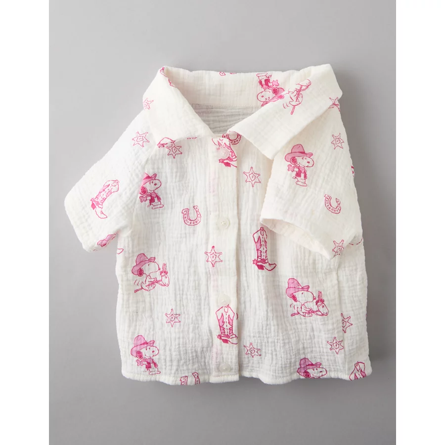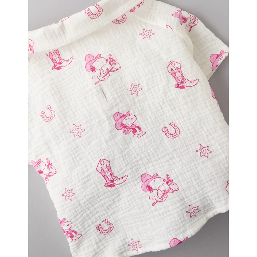 ABO Snoopy Western Button-Up Shirt – White