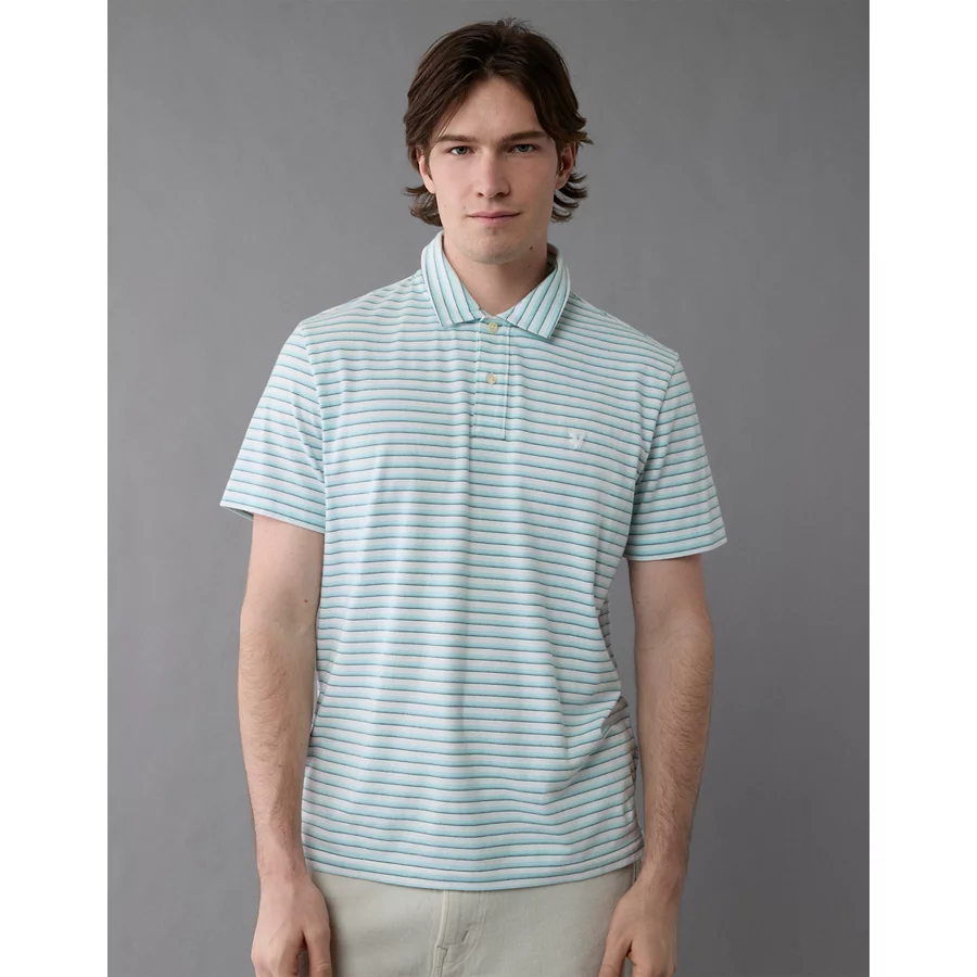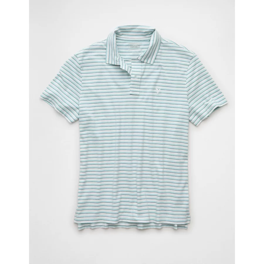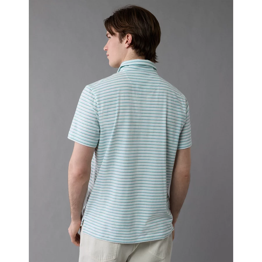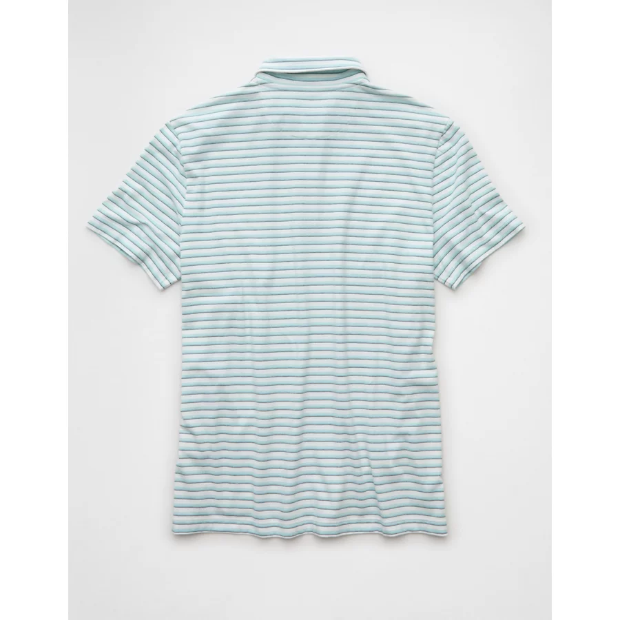 AE 24/7 Club Logo Striped Polo Shirt - Gray