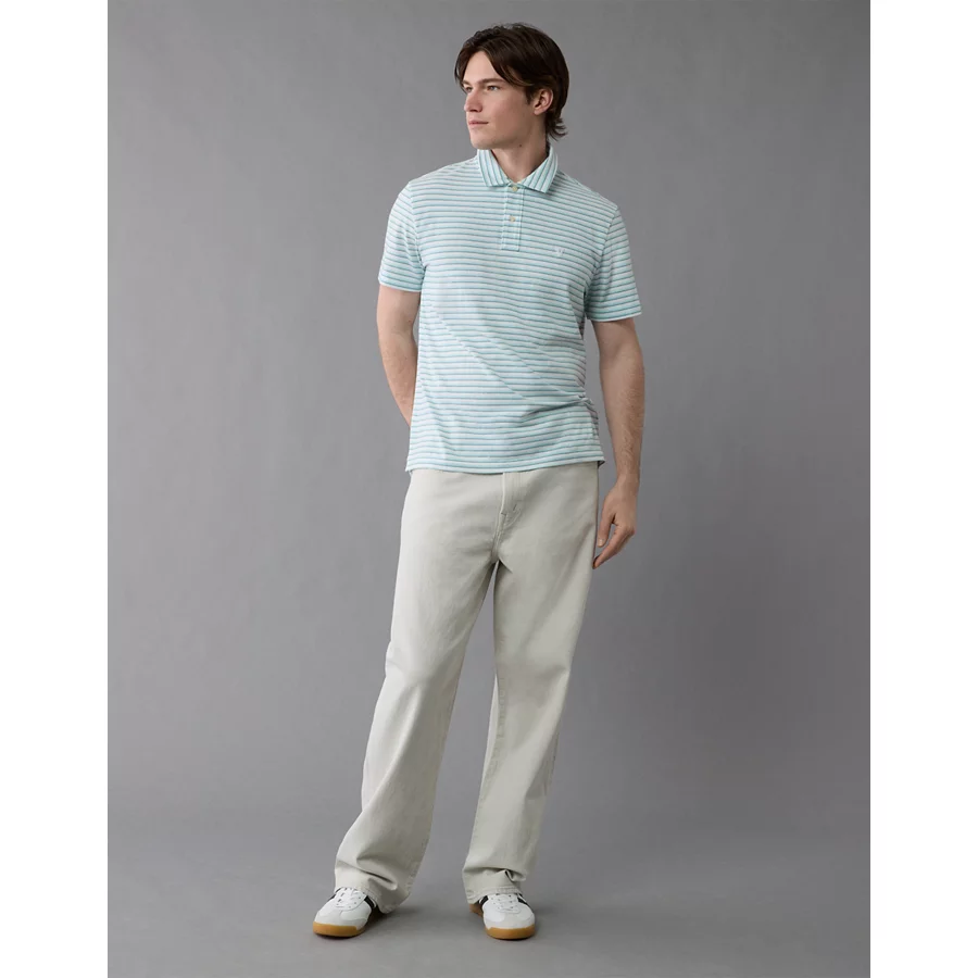 AE 24/7 Club Logo Striped Polo Shirt – Cream